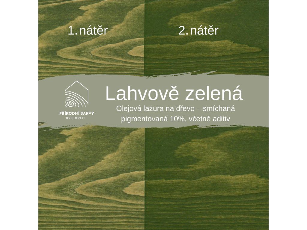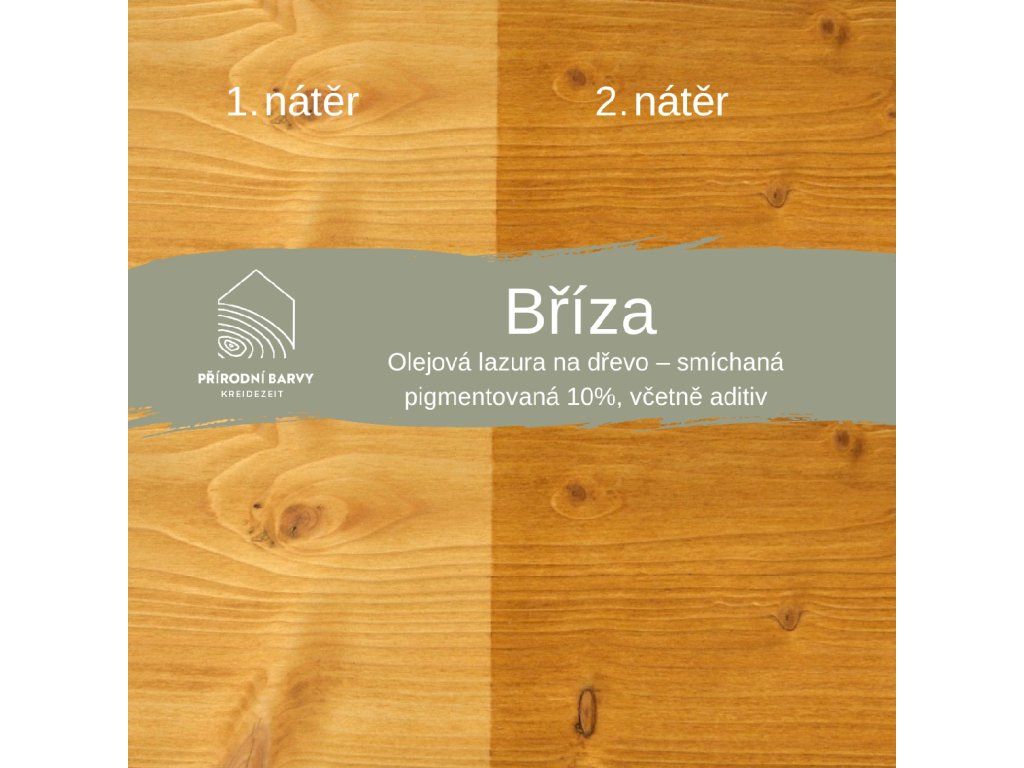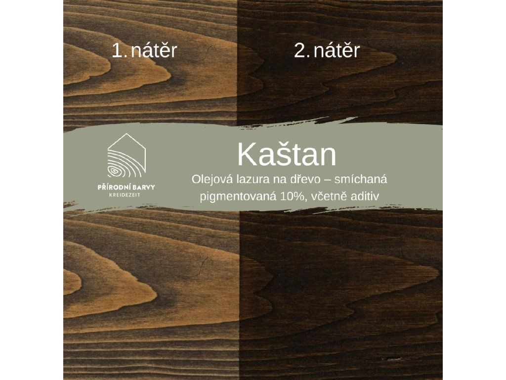 Pigmentovanou lazuru můžete použít k ošetření vnitřních i venkovních ploch. Je velmi difuzní a odvádí vlhkost ze dřeva do okolního prostředí. Dřevo tak chrání před hnilobou. Lazura KREIDEZEIT nepraská, neloupe se a netrhá. Uchovává si elastičnost a pozvolna se povrchově vstřebává. Díky tomu ji můžete bez velkých nákladů renovovat jednoduchým očištěním a přetřením.